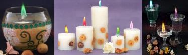 | Candles can not only bring brilliance to people, but also becomes a kind of luxury goods to make the beautiful settings. In current market, the flame of candle is yellow. Here we introduce you a new kind of liquid candle "coloured flame candle". This kind of candle is full of dreamy colour, which is romantically blue, passion red, fired yellow, youthful green and mysterious purple. The beautiful colour gives brand-new mission to the candle, which is to brighten people's deep heart and stands for harmless, bright, friendship and happiness. |