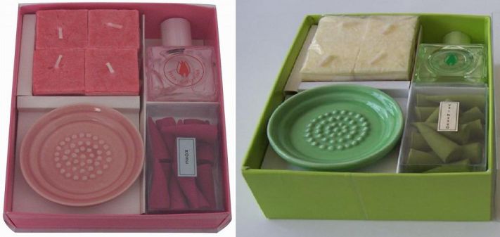 Take note : Incense smells of each colour are the following : green = green tea, blue = Ocean mist,
